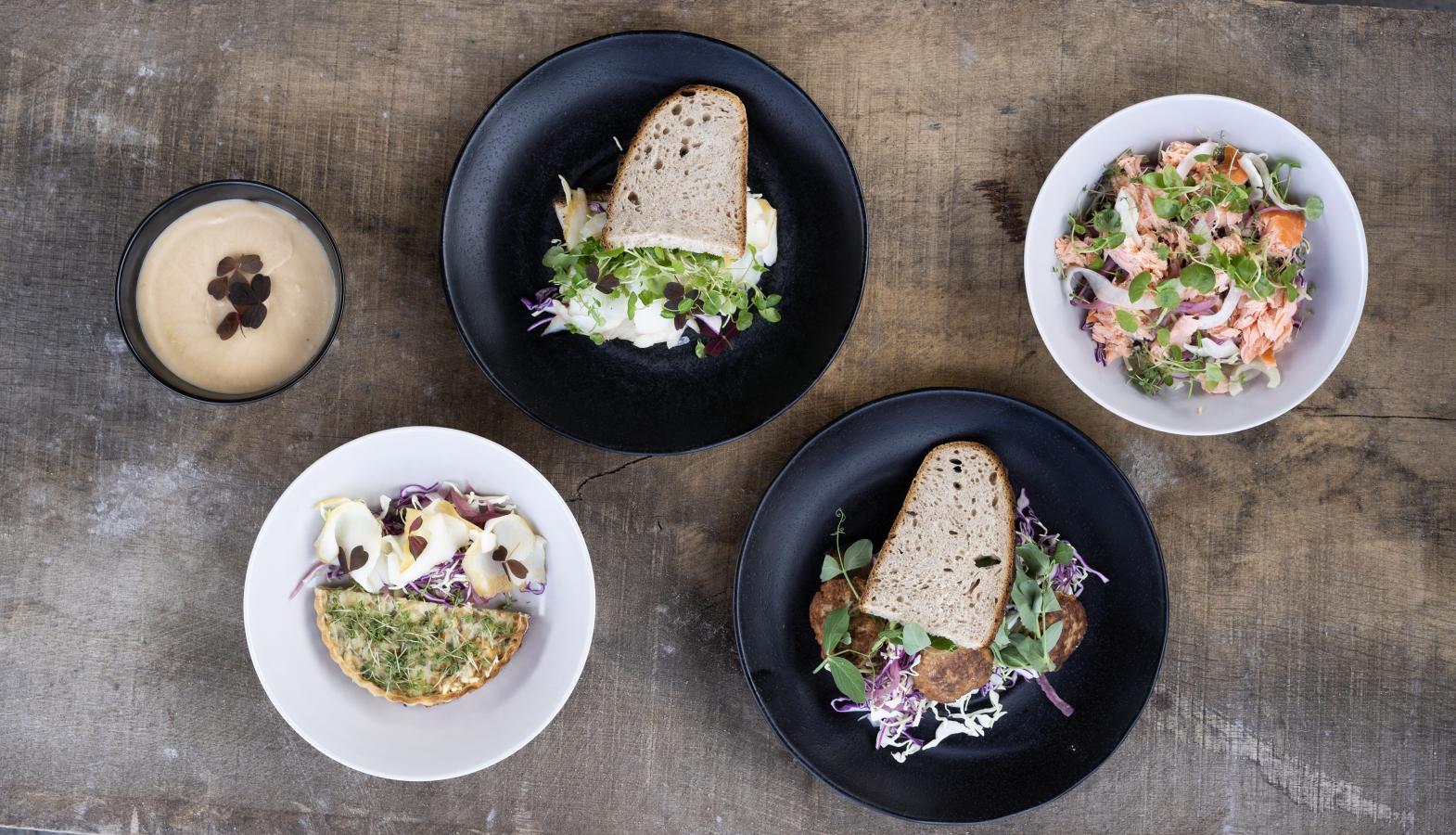 Vi afslutter vores rundtur med en frokost i caféen, hvor sæsonens grøntsager er på menuen sammen med hjemmebagt speltbrød og kød fra eget kvæg. Rundt om os er der hylder med mel, kaffe og delikatesser, som man kan købe med hjem. Det gælder også Svanholms egen marmelade, kødvarer og den helt friske jerseymælk. Grøntsager kan vi købe fra stalddørssalget lige ved siden af, og snart kan vi se frem til jordbærsæsonen og selvpluk på markerne lige udenfor.