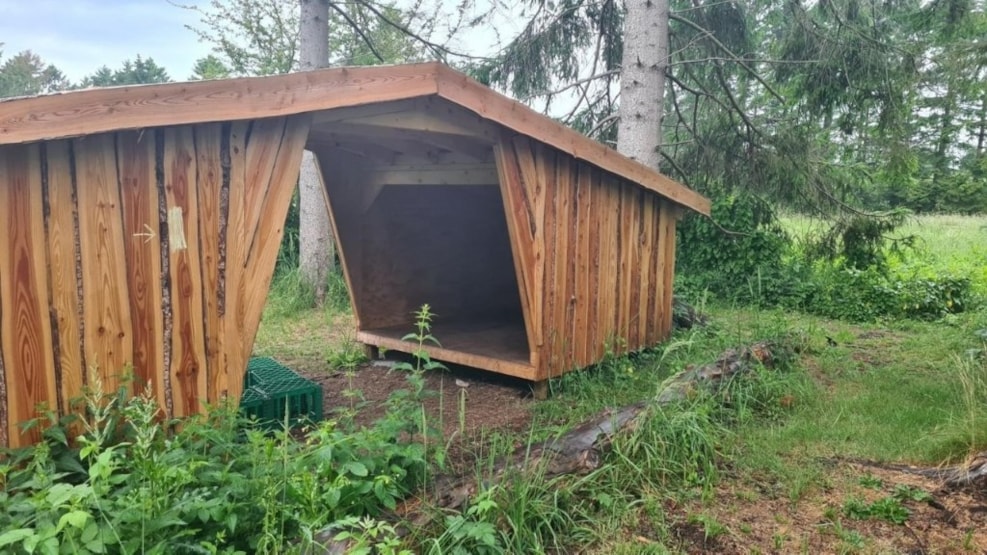 Der Shelterplatz besteht aus zwei miteinander verbundenen Sheltern, die sich gegenüberliegen und in der Mitte überdacht sind. Insgesamt können bis zu vier Personen in den Sheltern übernachten.